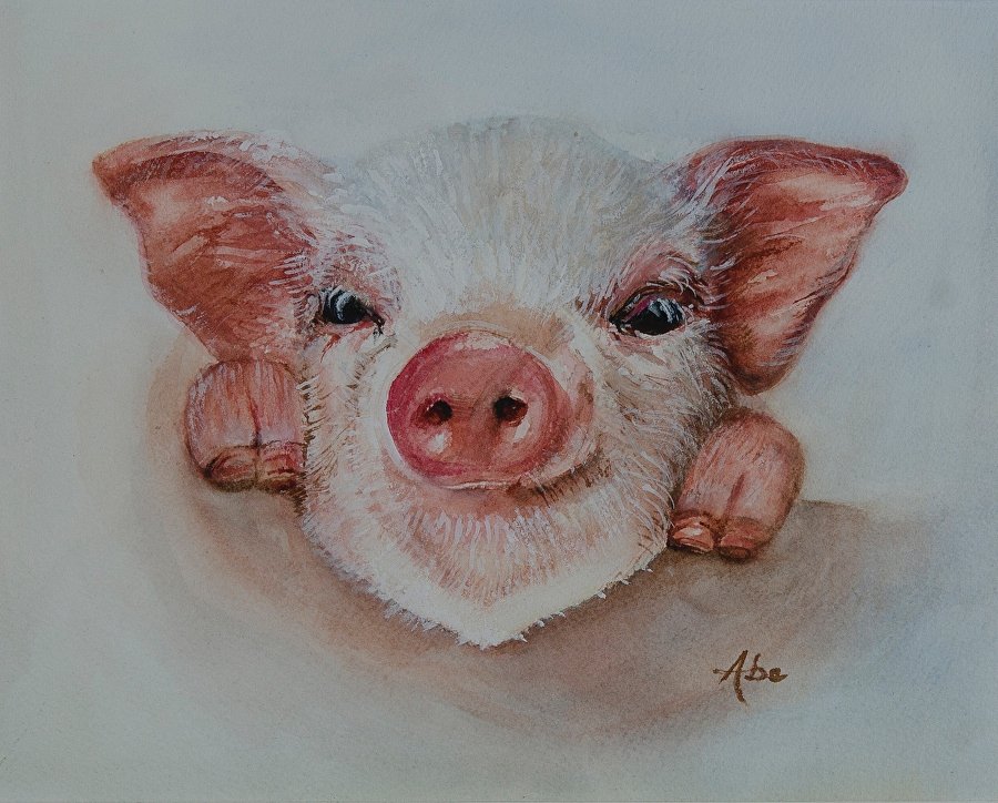 ####PIGLET MEDIUM: Watercolor On Arches 140 Watercolor Paper line 3 line 4